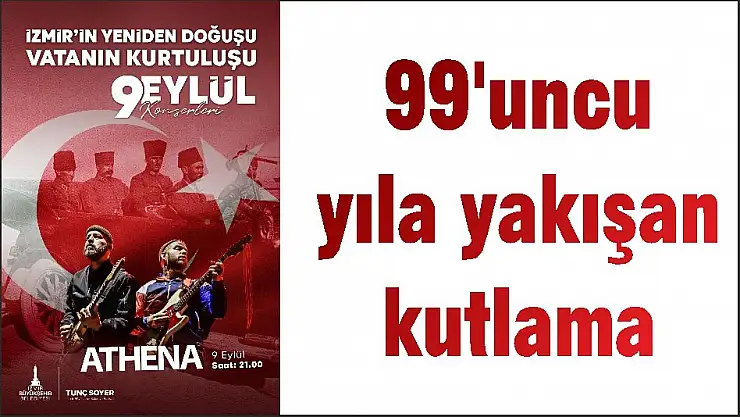 İzmir’in 99. yıl kurtuluş coşkusu, 9 Eylül akşamında zirve yapacak. İzmir Büyükşehir Belediyesi Bandosu eşliğinde saat 20.15’te Cumhuriyet Meydanı’ndan başlayacak fener alayı yürüyüşü sırasında İzmirliler, ellerindeki Türk bayraklarıyla Kordon’u adeta “gelincik tarlasına” çevirecek. Gündoğdu Meydanı’na kadar devam edecek fener alayının ardından saat 21.00’de Türk rock müziğinin efsane grubu Athena, 9 Eylül coşkusunu zirveye taşıyacak. Konser sırasında Flashmob zeybek gösterisi de düzenlenecek. Gece, İzmir Marşı eşliğinde lazer ve ışık gösterileriyle devam edecek.