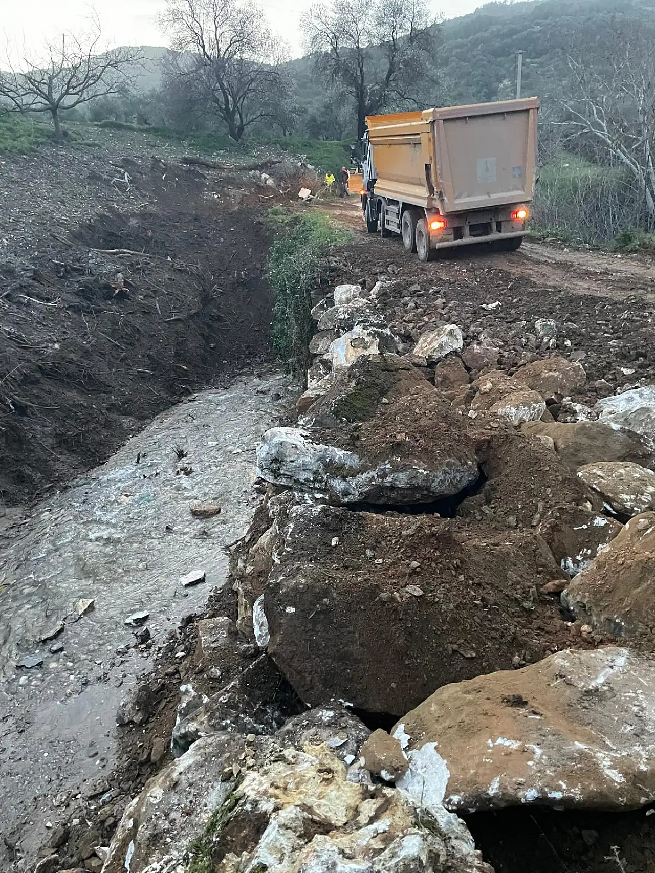 İzmir Büyükşehir Belediyesi Fen İşleri Dairesi ve Tire Belediyesi Fen İşleri Müdürlüğü ekipleri, bölgede 2 yoğun çalışma gerçekleştiriyor. Çalışmaların ilk etabı büyük ölçüde tamamlanırken, yol bugün akşam saatlerinde araç trafiğine açıldı.