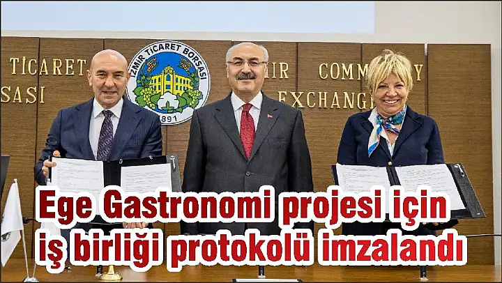 İzmir Büyükşehir Belediyesi, İzmir Ticaret Borsası ile Ege Gastronomi projesi için iş birliği protokolü imzaladı. İmza töreninde konuşan Başkan Tunç Soyer, 'Ege'nin kadim tarım ve gıda kültürünü belgelediğimiz, anladığımız ve bu kültürün korunması için yeniden dünyayla paylaştığımız önemli bir proje olacak. İzmir'in Cittaslow Metropol vizyonunu tamamlayacak ve ilki Eylül 2022'de yapılacak Terra Madre Anadolu fuarımızın gelişimine eşlik edecek' dedi.