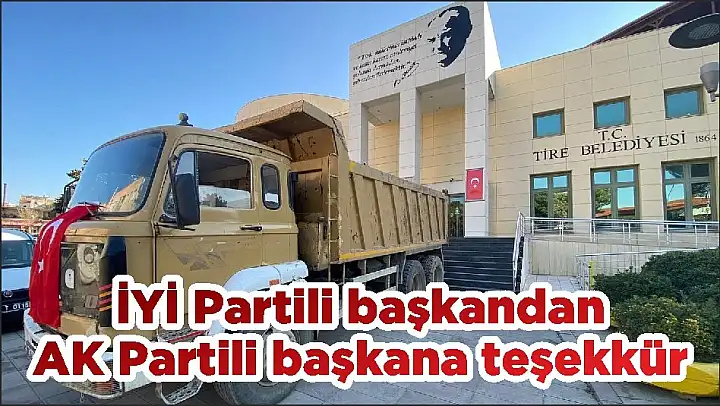 İYİ Partili Tire Belediye Başkanı Salih Atakan Duran, ilçesine kamyon desteğinde bulunan AK Partili Manisa'nın Yunusemre Belediye Başkanı Mehmet Çerçi'ye sosyal medya üzerinden teşekkür etti. AK Partili Yunusemre Belediye Başkanı Mehmet Çerçi, kendisine gelen başvuru üzerine Tire Belediyesi'ne kamyon desteğinde bulundu. Türk bayrağı ile donatılan kamyon, Tire Belediyesi'ne ulaştırıldı.