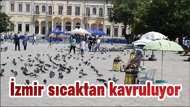 Türkiye'nin birçok şehrinde etkili olan sıcak havalar, İzmir'de de etkisini sürdürüyor. Mevsim normallerinin 6-8 derece üzerinde seyreden hava sıcaklıkları, kentte hayatı olumsuz yönde etkiliyor. Zaman zaman sıcaklıkların 40 dereceye çıktığı İzmir'de hissedilen değerler de 45 dereceyi aşıyor. Sıcaklardan bunalan vatandaşlar ise güneş altına çıkmamaya özen gösterirken kendilerini ağaç gölgelerine atıyor. Çocuklar ise Konak Meydanı'nda bulunan süs havuzuna girerek serinlemeye çalışıyor. Öte yandan meydandaki kuşlar da zaman zaman havuzunun başında serinleyip su içiyor.