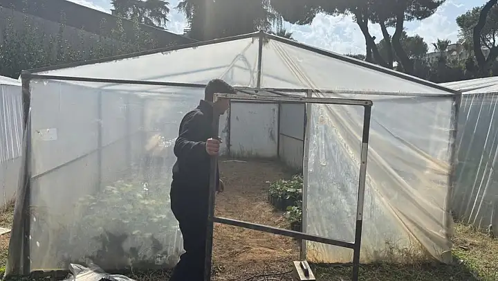 Bölümler arası iş birliği kapsamında, Metal İşleri Bölümü ve Tarım Alanı Bölümü ekipleri bir araya gelerek, sera kapılarını tamir etti ve serayı kışlık kullanıma hazır hale getirdi.
