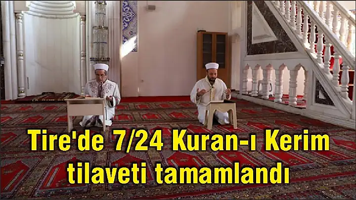 İzmir Müftülüğü'nün hayata geçirdiği ve geçtiğimiz ay Tire Lütfi Paşa Camii'nde başlatılan 7/24 Kuran-ı Kerim uygulaması tamamlandı. Projede Tire'de görev yapan yaklaşık 100 din görevlisi, bir ay boyunca nöbet sistemi ile sürekli olarak kesintisiz Kuran-ı Kerim okuyarak hatim yaptılar. Yapılan hatimler, Lütfi Paşa Camii'nde yapılan programla bağışlandı.