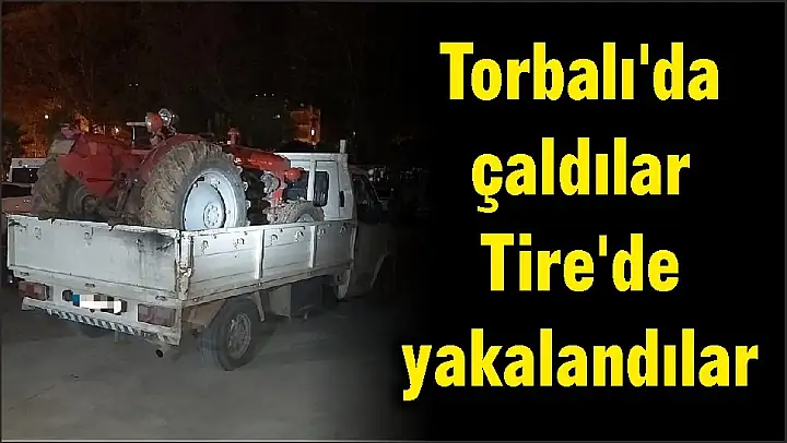 Tire'de traktör çaldıkları iddiasıyla gözaltına alınan iki şüpheli tutuklandı. Tire İlçe Emniyet Müdürlüğü ekipleri, üzerinde plakasız traktör bulunan kamyoneti durdurdu. Araçtaki aramada demir kesme makası ve bir adet kurusıkı tabanca bulundu. Traktörün ise motor numarasından yapılan sorgulamasında Torbalı ilçesinden çalıntı olarak arandığı ortaya çıktı. Kamyonette bulunan İ.P. ve E.K. isimli şüpheliler gözaltına alındı. Emniyetteki işlemlerinin ardından adliyeye sevk edilen zanlılar, hırsızlık suçundan tutuklandı.