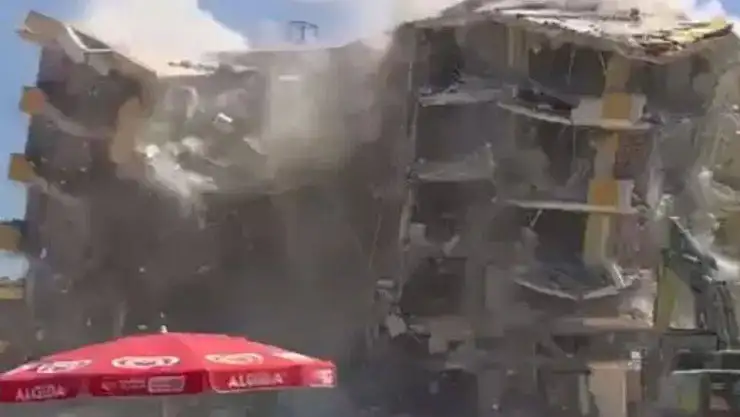 6 Şubat Maraş merkezli depremlerden etkilenen Antep’in İslahiye ilçesinde, ağır hasarlı binaların yıkımı sürüyor. Atatürk Mahallesi’nde 5 katlı binanın bugün kontrollü yıkımı için çalışma başlatıldı.