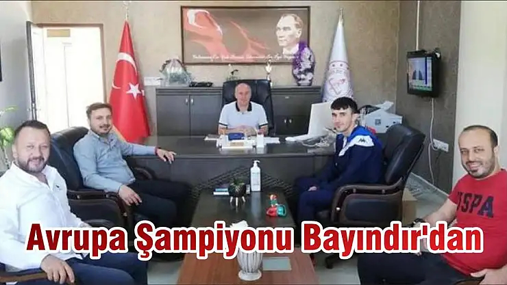 Bayındır Milli Eğitim Müdürü Serdar Ökay, şampiyon Emre Çimrin, okul idarecileri ve öğretmenleri, makamında kabul etti.