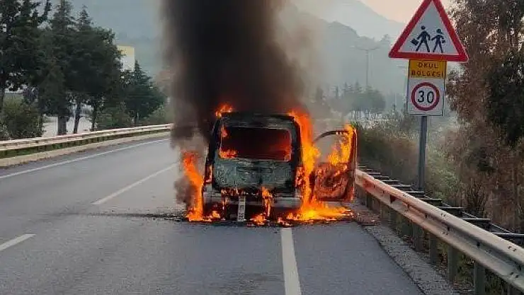 Olay, Söke-Kuşadası yolu üzerindeki Granta mevkiinde meydana geldi. Araç Söke’den Kuşadası istikametine seyir halindeyken aniden alevlerle kaplandı. Sürücü, zorlukla araçtan kendini dışarı attı. İhbar üzerine olay yerine sevk edilen itfaiye ekipleri, yangını kısa sürede kontrol altına aldı. Araç yangında tamamen kullanılamaz hale geldi. Olayla ilgili olarak inceleme başlatıldı.
