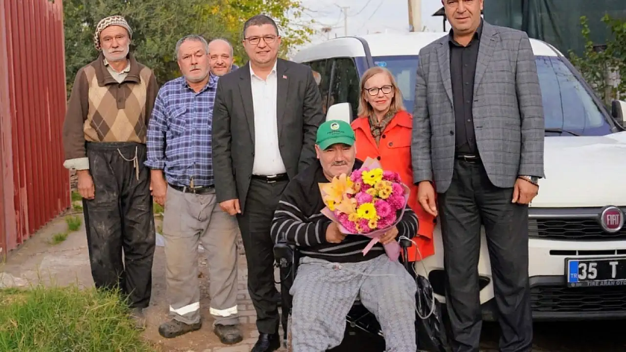 Bundan yaklaşık 10 yıl önce zeytin ağacından düşmesi sonucu, bel altı bölgesi felç olan Murat Akbay, artık yürüyemiyor. Tire Belediyesi Sosyal Yardım İşleri Müdürlüğü tarafından Akbay için temin edilen akülü tekerlekli sandalyeyi, Belediye Başkanı Hayati Okuroğlu bizzat takdim etti.