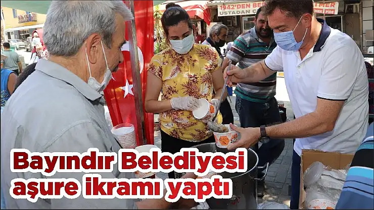 Bayındır Belediyesi tarafından Muharrem ayı münasebetiyle Cumhuriyet Meydanı’nda aşure ikramı yapıldı. Aşure dağıtımına Belediye Başkanı Uğur Demirezen, Belediye Başkan Yardımcısı Osman Kadan ve belediye meclis üyeleri katıldı.