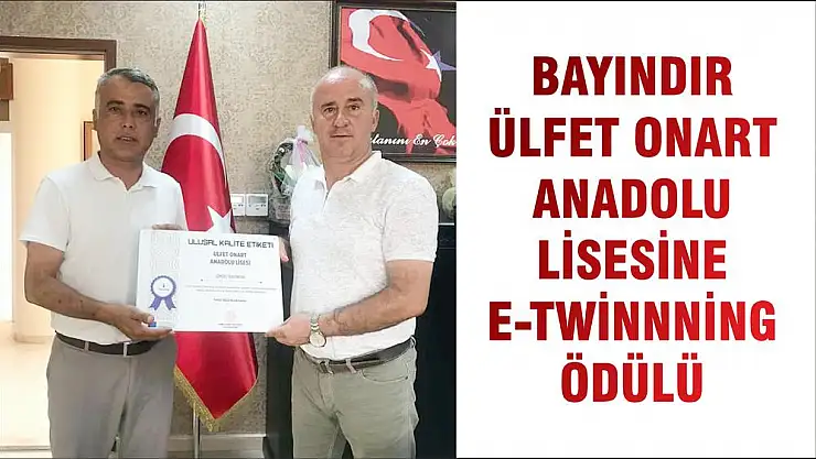 Bayındır İlçesinin eğitim kurumlarından Ülfet Onart Anadolu Lisesinin e- Twinnning proje ödül belgesini Bayındır İlçe Milli Eğitim Müdürü Serdar Ökay tarafından Okul Müdürü Ali Şanlı’ya takdim edildi.