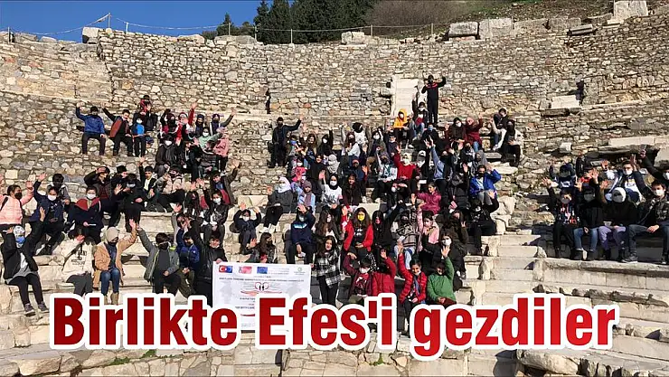 Karabağlar ilçesindeki Seniha Mayda Ortaokulu’nda eğitim gören Türk ve Suriyeli öğrenciler, Efes Antik Kenti ve Şirince’yi ziyaret etti. Suriyeli öğrencilerin uyumu için 2019 yılında başlatılan “İlgiyle Mutlu Bilgiyle Başarılı Mülteciler” isimli Erasmus projesi kapsamında çocukların kaynaşması için gezi düzenlendi. Bu kapsamda 41 Suriyeli ve 53 Türk öğrenci, Selçuk ilçesindeki Efes Antik Kenti ve Şirince Mahallesi’ni ziyaret ederek birlikte keyifli vakit geçirdi.