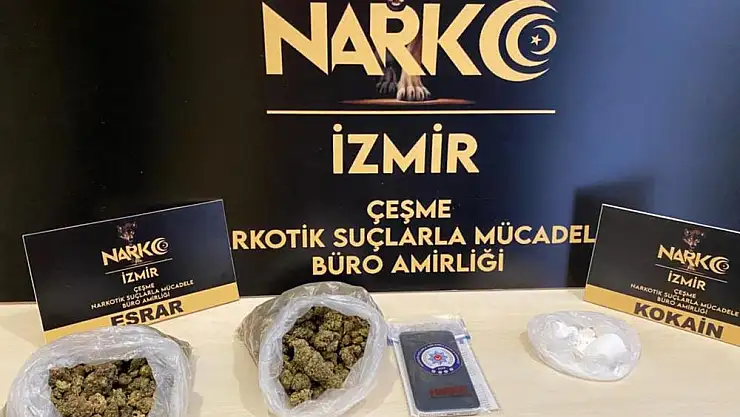 Edinilen bilgiye göre, Çeşme Narkotik Büro Amirliği ve Çeşme İlçe Emniyet Müdürlüğü ekipleri, yapılan çalışma sonucunda bir araç ile bir eve operasyon gerçekleştirdi. Araçta ve evde arama yapan polis ekipleri, 95 gram kokain maddesi, 234 gram esrar maddesi ve satışa hazır olduğu değerlendirilen 38,97 gram esrar maddesi ele geçirdi.