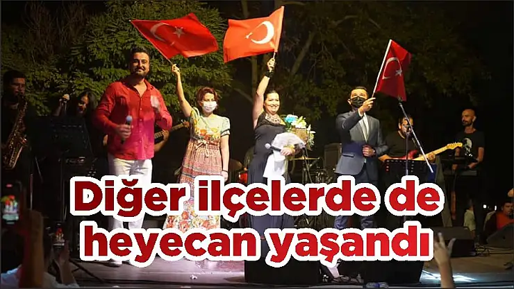 30 Ağustos Zafer Bayramı’nın coşkusu, Küçük Menderes Havzası’nın diğer ilçelerinde de akşam saatlerine taştı. Kiraz’da Şehit Birol Uysal Parkı’nda Fırat Tanır konseri gerçekleşti. Bayındır’da coşkulu bir fener alayı yürüyüşü yapılırken aynı manzara Tire’de de yaşandı. Torbalı’da ise fener alayı programı kapsamında saat 18.00’de gerçekleştirilen bisiklet turunun ardından saat 21.00’de Ayrancılar Barış Manço Caddesi’nden başlanarak Ayrancılar Meydan Kafe’ye kadar kortej gerçekleştirildi. Burada ise Ezginin Günlüğü konseri eşliğinde Torbalılıların büyük bir coşku yaşadığı 30 Ağustos Zafer Bayramı kutlamaları sona erdi.