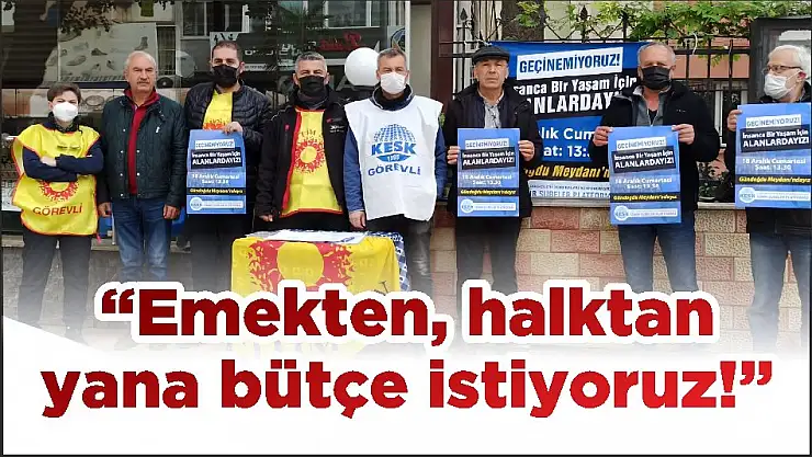 Asgari ücretin vergi dışı bırakılmasını, belli bir servet düzeyinin üzerindeki zenginlerden servet vergisi alınmasını, temel tüketim maddelerine son iki yıl içinde yapılan zamların geri alınmasını, söz konusu maddelerden alınan KDV’nin sıfırlanmasını, her türlü güvencesiz istihdam uygulamasına son verilmesini, herkese güvenceli iş ve güvenli gelecek sağlanmasını, lisans ve ön lisans mezunu tüm kamu emekçilerinin ek göstergesinin 3600’e çıkarılmasını, toplumsal cinsiyete duyarlı bir bütçenin hayata geçirilmesini, ILO’nun 190 sayılı Şiddet ve Taciz Sözleşmesi’nin imzalanmasını İSTİYORUZ. İŞSİZLİĞE, YOKSULLUĞA HAYIR! EMEKTEN, HALKTAN YANA BÜTÇE İSTİYORUZ!”