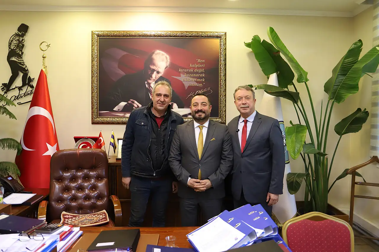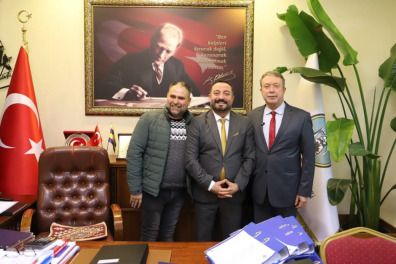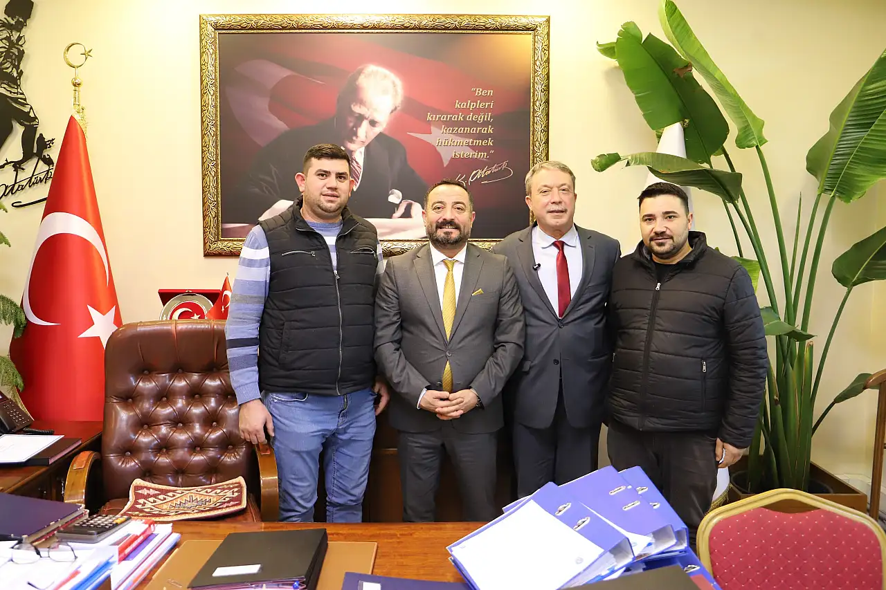 Ödemiş Madeni İşler ve Demirciler Odası Başkan Adayı Erdem Derya, yönetim kurulu üyeleriyle birlikte Ödemiş Belediye Başkanı Mustafa Turan'ı makamında ziyaret etti.