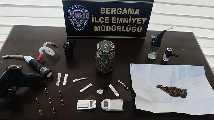 Şüpheliye yapılan yakın takiplerin ardından ekipler tarafından belirlenen adrese operasyon düzenlendi. Ekipler tarafından düzenlenen adreste yapılan aramada, kavanoz içerisinde ve kağıda sarılı halde esrar maddesi, bir miktar metamfetamin, 2 hassas terazi, 1 adet ruhsatsız tabanca ve tabancaya ait fişek ile uyuşturucu ticaretinden elde edildiği belirlenen 3 bin 940 lira nakit para ele geçirildi.