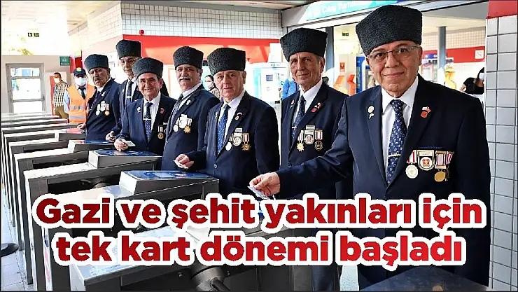 İzmir Büyükşehir Belediyesi şehit yakınları, gazi ve gazi yakınlarının talepleri doğrultusunda toplu ulaşımda tek kart uygulamasını hayata geçirdi. Artık gazi ve şehit yakınları, İzmirim Kart kullanmadan Aile ve Sosyal Hizmetler Bakanlığı tarafından verilen kartla toplu ulaşım araçlarına binebilecek.