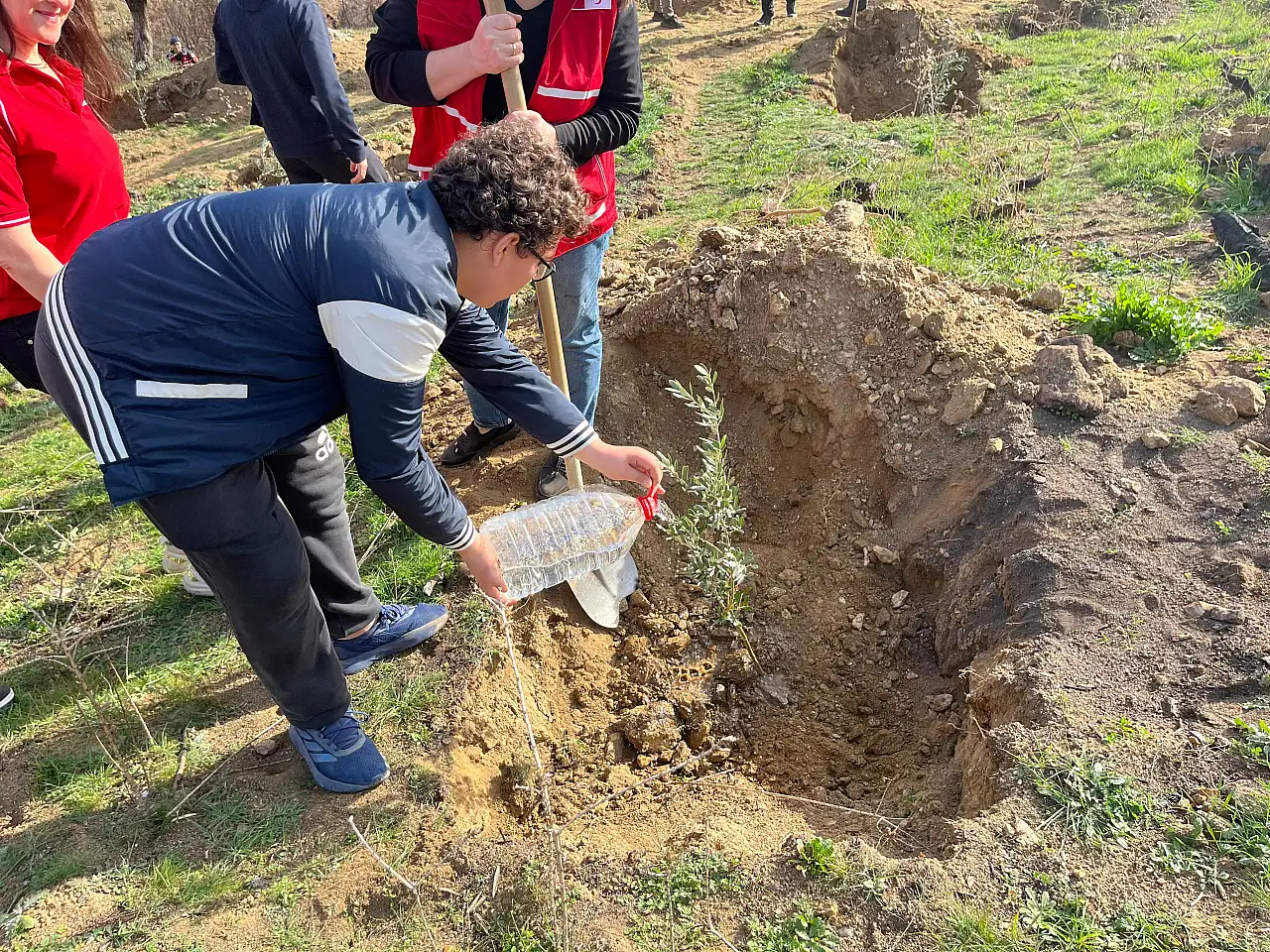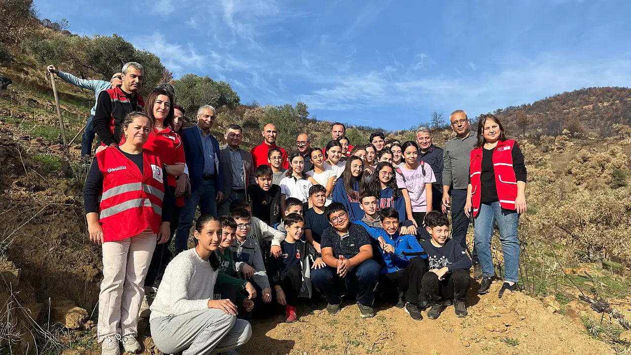 Türk Kızılayı Ödemiş Şubesi’nin de destek verdiği etkinlikte öğrenciler, öğretmenler ve vatandaşlar el ele vererek geleceğe nefes olacak fidanları dikti. Program, hem doğaya kazandırılan yeni zeytin fidanları hem de öğrencilerin duyarlılığıyla örnek bir dayanışma atmosferi oluşturdu.