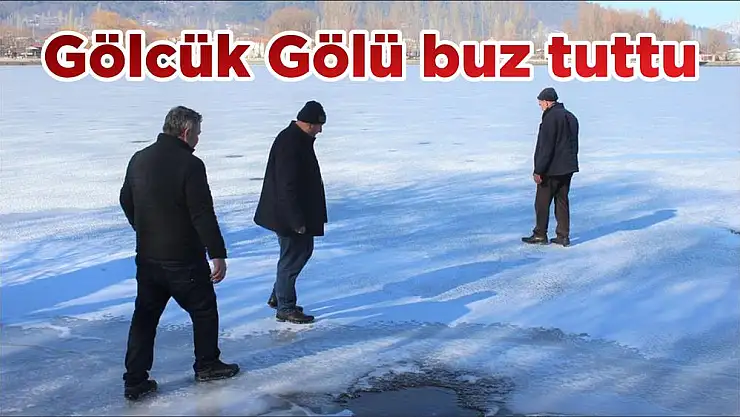 Ödemiş ilçesindeki Gölcük Gölü’nün yüzeyi, hava sıcaklığının sıfırın altına düşmesiyle buzla kaplandı.