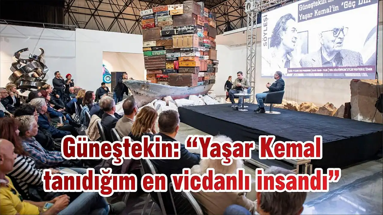 Ressam Ahmet Güneştekin İzmir’de Yaşar Kemal’in göç edebiyatını anlattı. Kültürpark Atlas Pavyonu’ndaki Güneştekin’in mübadele temalı “Gavur Mahallesi” sergisi ile iç içe yapılan söyleşiye ilgi yoğundu. İzmir Büyükşehir Belediye Başkanı Tunç Soyer’in de izlediği söyleşide yurtlarından edildikleri için köksüz kalmış insanların hikayesi, Yaşar Kemal’in “Ada Hikâyesi” dörtlemesi üzerinden ele alındı. Söyleşi sık sık alkışlarla kesildi.