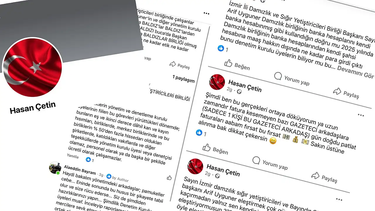 İzmir Damızlık Sığır Yetiştiricileri Birliği'ne yönelik açıldığı iddia edilen sahte bir Facebook hesabı üzerinden bazı isimler hakkında asılsız paylaşımlar yapıldığı öne sürülüyor.