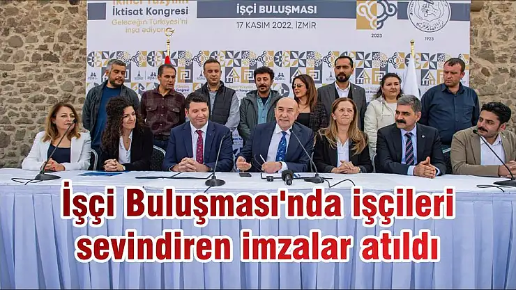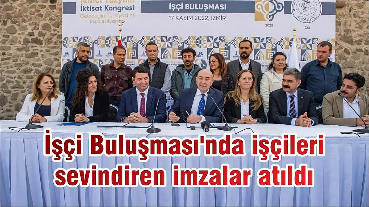 İzmir Büyükşehir Belediye Başkanı Tunç Soyer, “Hayırlı bir iş için bir aradayız. Promosyon işçinin hakkıdır. Bizde o hakkı teslim etmek için bu girişimde bulunduk. İş Bankası ile mutabık kalarak son noktayı koyduk. Tam da İktisat Kongresi ile ilgili bir araya geldiğimiz zamana denk gelmiş olması da ayrıca bizi çok mutlu etti. Hayırlı olsun” dedi.