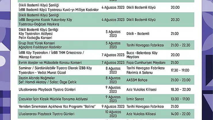 - İzmir Büyükşehir Belediyesi ağustos ayı kültür sanat etkinliklerini yayınladı