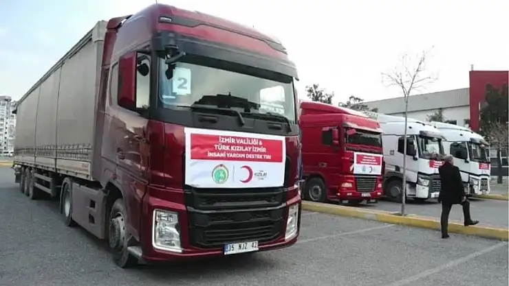 İzmir Valisi Yavuz Selim Köşger, sosyal medya hesabından yaptığı paylaşımda il merkezi ve 30 ilçeden toplanan yardım malzemelerini taşıyan 31 tırın deprem bölgelerine taşındığını bildirdi.