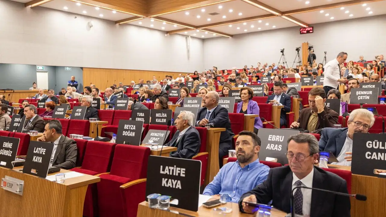Toplantıya katılan CHP’li meclis üyeleri, Kadına Yönelik Şiddete Karşı Uluslararası Mücadele Günü kapsamında şiddet mağduru kadınları anmak için pankartlar taşıdı.