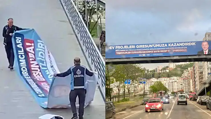 Giresun’da Millet İttifakı’nın bugün saat 13.30’da yapacağı miting için üst geçite asılan Kemal Kılıçdaroğlu pankartı, AK Parti’nin başvurusu üzerine indirildi.