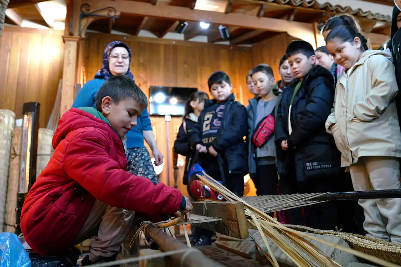 Müzedeki eserleri, uzmanların anlatımıyla inceleyen minik öğrenciler, el sanatlarını da bizzat ustalardan dinlediler.