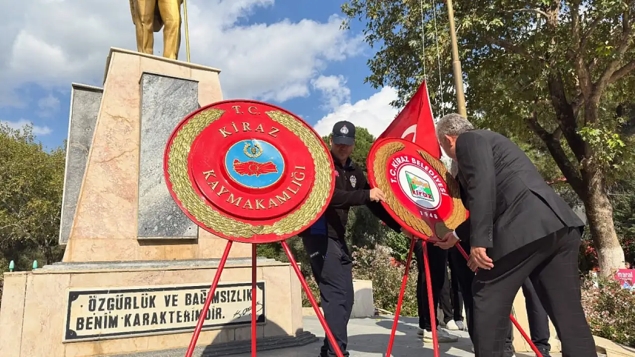İzmir'in Kiraz ilçesinde, 29 Ekim Cumhuriyet Bayramı kutlamaları Şehit Birol Uysal Parkı Cumhuriyet Meydanı'nda düzenlenen çelenk sunma töreniyle başladı.