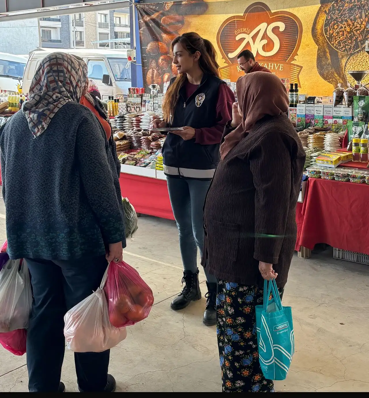 Bu kapsamda ilçenin en büyük pazar alanında, İlçe Emniyet Müdürü Eşref Acar’ın talimatlarıyla örnek bir güvenlik ve bilgilendirme uygulaması gerçekleştirildi.