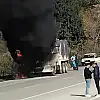 Kiraz-Ödemiş yolunda süt tankeri alev aldı!