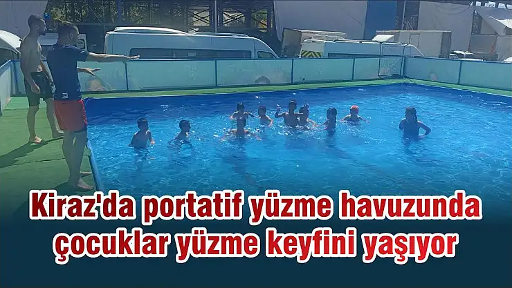İzmir Büyükşehir Belediyesinin desteği ile İzmir’in çeşitli ilçelerine gönderilen portatif yüzme havuzunda Kirazlı çocuklar ve gençler yüzme keyfini doyasıya yaşıyor.