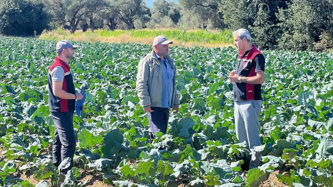 Ödemiş İlçe Tarım ve Orman Müdürlüğü ekipleri, İzmir İl Tarım ve Orman Müdürlüğü tarafından yürütülen 'İzmir İli Kışlık Sebze Yetiştiriciliği Projesi' kapsamında üreticilere yüzde 50 hibeyle dağıtılan brokoli ve karnabahar fidelerinin gelişimlerini tarlalarda inceledi.