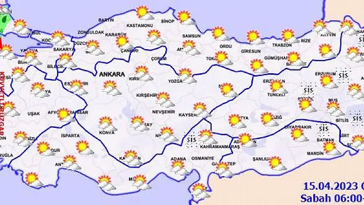 Meteoroloji Genel Müdürlüğü tarafından yapılan son açıklamalara göre ülkemizin kuzey, iç ve doğu kesimlerinin parçalı ve yer yer çok bulutlu, Marmara’nın batısı, Batı Karadeniz’in iç kesimleri ile Bursa ve Balıkesir çevrelerinin yerel olmak üzere aralıklı sağanak ve gök gürültülü sağanak yağışlı, diğer yerlerin az bulutlu ve açık geçeceği tahmin ediliyor. Bu sabah ve gece saatlerinde doğu kesimlerde yer yer sis ve pus bekleniyor.