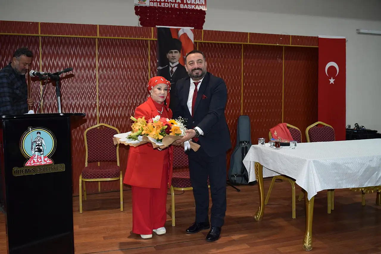Sevilen Sanatçıya, Ödemiş Cumhuriyet Başsavcısı Mehmet KARABULUT tarafından plaket,Belediye Başkanı Mustafa TURAN tarafından çiçek, Ödemiş Denetimli Serbestlik Müdürü Önder ÖZSARI tarafından gönüllü tanıtım kartı takdim edilmiştir.