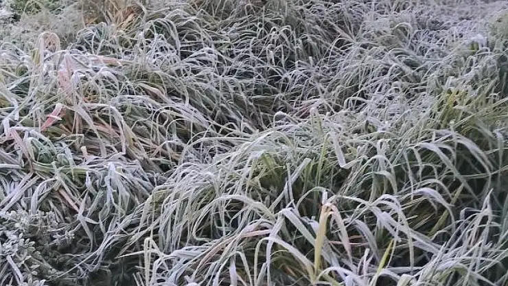 Ödemiş'te soğuk havanın etkisiyle kırağı oluştu. Sabahın ilk ışıklarıyla birlikte otlar, beyaz bir örtüyle kaplanmış gibi görünerek doğaya adeta gelinlik giymiş havası verdi.