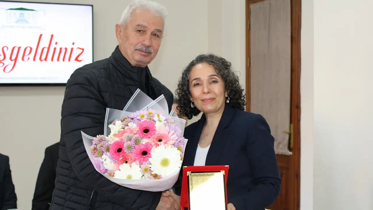 Fatma Ergen’e görev süresi boyunca yaptığı çalışmalardan dolayı plaket takdim edildi.