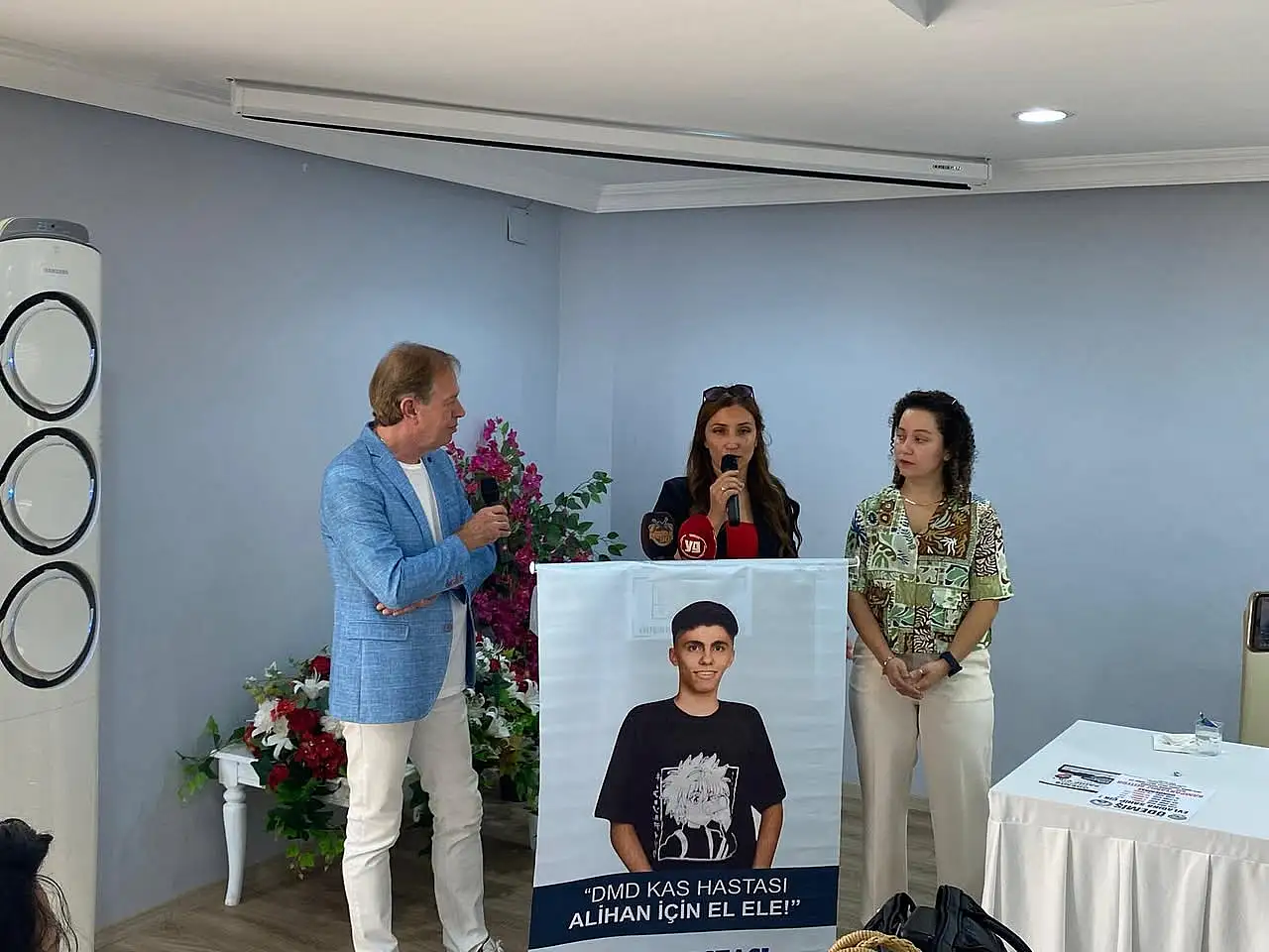 Ödemiş Kaymakamı Hakan Yavuz Erdoğan, Duchenne Musküler Distrofi (DMD) kas hastası Alihan Kuzucuk'a destek amacıyla düzenlenen 'Alihan İçin El Ele' programına katıldı.