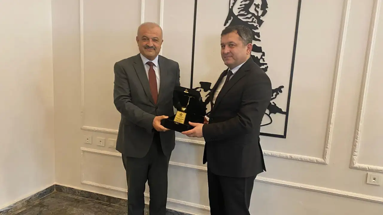 Ödemiş Kaymakamı Hakan Yavuz Erdoğan, Irak Ninova Bölgesi heyetiyle meyve fidanı ve süs bitkileri üretimi konusunda toplantı yaptı.