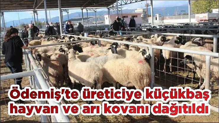 Ödemiş’te üreticiye küçükbaş hayvan ve arı kovanı dağıtımı yapıldı. İzmir İl Tarım ve Orman Müdürlüğü ile İzmir Damızlık Koyun Keçi Birliği tarafından Ödemiş Hayvan Pazarı’nda küçükbaş hayvan ve arı kovanı dağıtım töreni düzenlendi. Törende 18 üreticiye 15’er koyun ve birer koç olmak üzere toplam 288 küçükbaş hayvanın dağıtımı gerçekleştirildi. Bölgedeki 71 arıcıya da beşer kovan olmak üzere 355 arı kovanı verildi.
