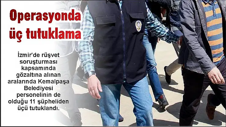 İzmir’de rüşvet soruşturması kapsamında gözaltına alınan aralarında Kemalpaşa Belediyesi personelinin de olduğu 11 şüpheliden üçü tutuklandı....