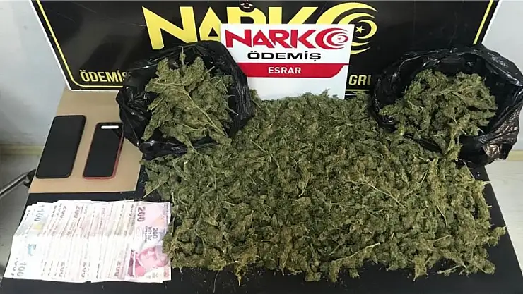 Ödemiş Narkotik Grup Amirliği ekipleri, uyuşturucu madde ticaretini engellemeye yönelik çalışmalar çerçevesinde, bir otomobilin İzmir’e yüklü miktarda uyuşturucu getireceği bilgisini edindi. Plakası önceden belirlenen otomobil Beydağ Ödemiş yolunda durduruldu. Araç içerisinde yapılan aramada 1 kilogram esrar maddesi ve uyuşturucu satışından elde edildiği değerlendirilen 8 bin 500 Türk Lirası para ele geçirildi.
