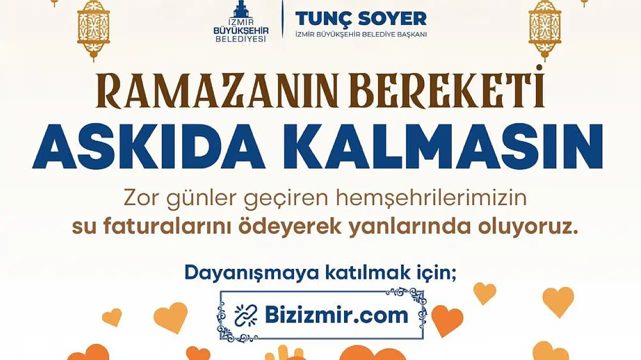 İzmir Büyükşehir Belediyesi ekonomik krizin ağırlaştırdığı yaşam koşulları nedeniyle temel ihtiyaçlarını bile karşılamakta zorlanan ailelere destek olmak için Askıda Fatura uygulamasını yeniden hayata geçirdi. Ramazan ayının dayanışma ruhunun yükseldiği çok özel günler olduğunu ifade eden İzmir Büyükşehir Belediye Başkanı Tunç Soyer tüm İzmirlileri imkanları ölçüsünde kampanyaya destek vermeye çağırarak “İşsizlik ve yoksulluk ülkemizin en büyük problemi. Hayat pahalılığı akıl almaz boyutlara ulaştı. Şimdi yeniden dayanışma zamanı. Maddi sıkıntı yaşayan hemşerilerimizin su faturalarını ödeyerek bu dayanışmayı büyütebiliriz. İnanıyorum ki bu dayanışma bizi ayakta tutacak ve zor günleri bu sayede aşacağız” dedi.