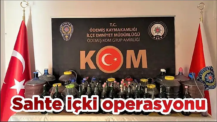 Ödemiş İlçe Emniyet Müdürlüğü Kaçakçılık ve Organize Suçlarla Mücadele (KOM) Grup Amirliği ekipleri, ilçede bulunan bir adreste sahte içki bulundurulduğu bilgisi üzerine çalışma başlattı. Operasyonda polis ekipleri tarafından adreste yapılan aramada 235.5 litre sahte şarap, 1410 mililitre sahte rakı ve 16 adet boş şişe ele geçirildi. Olayla ilgili D.B. ve H.A. adlı iki şüpheli hakkında işlem başlatıldığı öğrenildi.