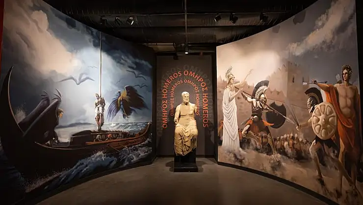 Yaşar Üniversitesi Çizgi Film ve Animasyon Bölümü Öğretim Görevlisi Sarp Selçuk, “Hasankeyf’teki illüstrasyon çalışmalarımı gören Ardin Müze ve Sergi Teknolojileri adlı firma benimle iletişime geçti ve proje için illüstrasyon isteğinde bulundu. Korkut Hocamdan da yardım istedim ve 3 ay gibi çok kısa bir sürede, yoğun çalışmalar sonucu toplamda 22 illüstrasyonu tamamladık. Dijital teknikler kullandık. Homeros heykelinin olduğu illüstrasyonda, sağ tarafta İlyada, solda ise Odysseia destanlarını resmettim. İlyada’da Achilles ve Hector’un düellosunu anlattım. Başka bir eserde Efes Celsus Kütüphanesi’ni resmettim. Diğer eserde ise insanları sesleriyle büyüleyen sirenlerden etkilense de onlara kapılmaması için gemi direğine bağlanmış Kral Odysseus’u görüyoruz. İllüstrasyonlar, tamamen buluntulardan oluşan bir müzenin hikayesini anlatıyor. Müzeye bir görsel hikayeleştirme kazandırdığımızı düşünüyorum” dedi.