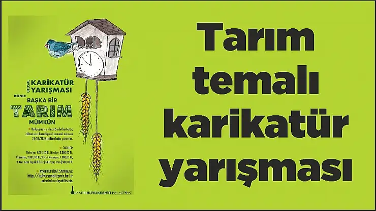 İzmir Büyükşehir Belediyesi, “Başka Bir Tarım Mümkün” temasıyla ulusal karikatür yarışması düzenliyor. Başkan Tunç Soyer’in yerel tohumlar ve yerel ırkları yaygınlaştırarak kuraklıkla, küçük üreticiyi destekleyerek yoksullukla mücadele üzerine temellenen “Başka Bir Tarım Mümkün” anlayışı, çizgilere konu oluyor. İklim krizi ve kuraklık tehdidine karşı toplumsal duyarlılığın güçlendirilmesinin hedeflendiği yarışmada kooperatifleşme, köy yaşamı, tarım teknolojisi, ekolojik denge, geleneksel üretim, yöresel ürünler, organik tarım, toprak ve su güvenliği, zirai sulama, yaban hayatı, gıda israfının önlenmesi gibi tarımsal üretimin alt başlıkları da işlenebilecek.
