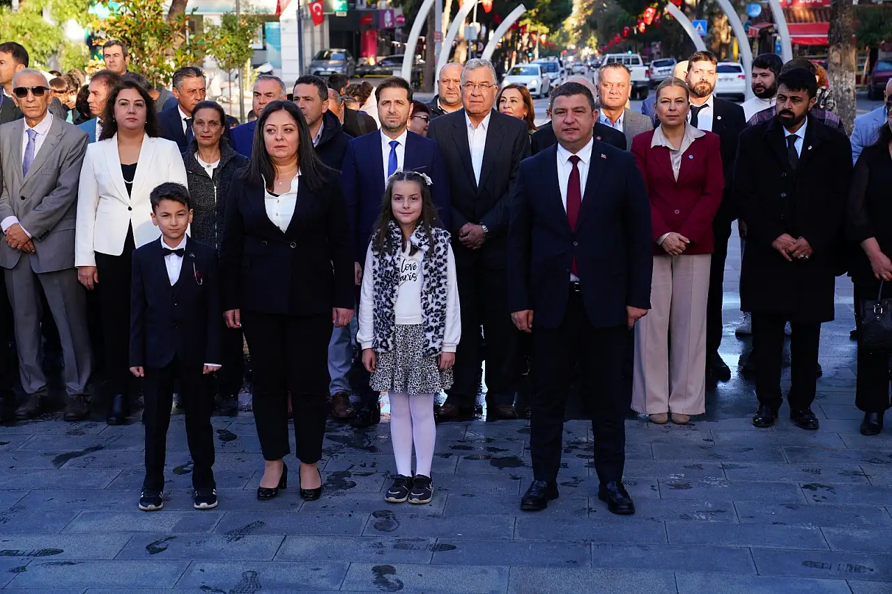 Cumhuriyet Meydanı’nda çelenk sunumuyla başlayan program, Tire Belediyesi Kültür Salonu’nda devam etti.